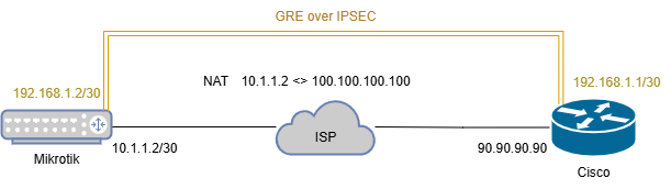 - We have to build GRE over IPSEC (L3 routed) connectivity between Cisco and Mikrotik devices.