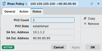 IKEv2 SA: local 90.90.90.90/4500 remote 100.100.100.100/4500 Active